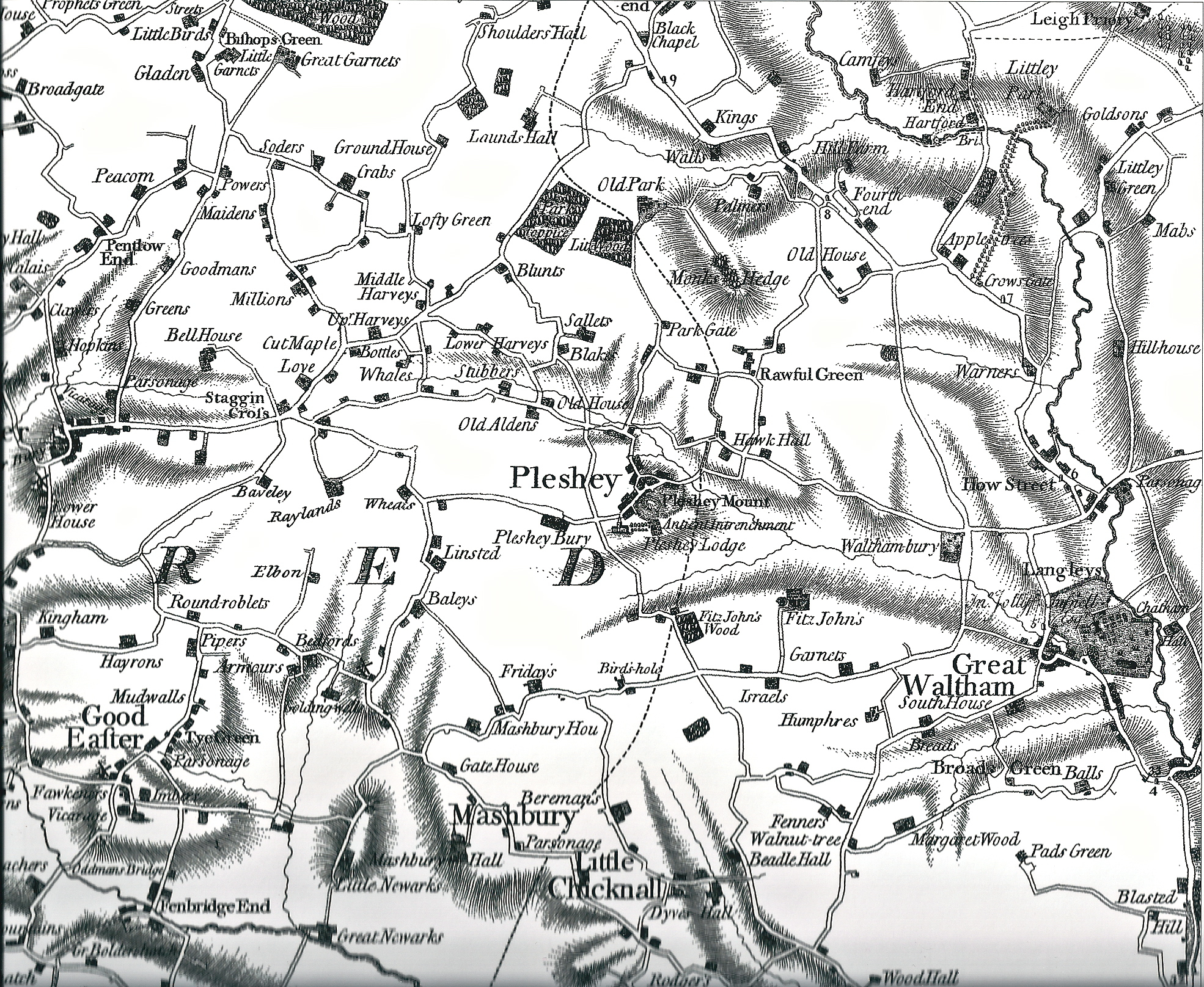 1773 map of the area North West of Chelmsford